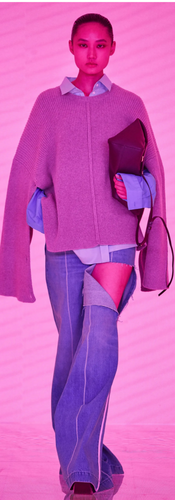 Peter Do, was probably the most talked-about designer on my Twitter feed when his collection was released. It was only his second show but Do’s sleek silhouettes and expressive minimalism seemed to be building a signature style. Even though his colour palette of black, white, camel and grey was traditional, the structure and cut of each outfit seemed bold. My personal favourites were looks 10 and 11, which sported the unnecessary yet unique side cut in the jean. It elevated the otherwise simple look, adding the essence of Do. From exaggerated lapels and hip, belts Do played with the concept of femininity and comfort. An article with Vogue Runway Do stated that: “I wanted to do fashion that feels the most me,... I really like the suit. I like that it takes time to make, that you don’t need to buy many, and that when you find a good one, it becomes your safe space. I want to be that for women.” Do has achieved just that. The simplistic silhouettes, pleated maxi skirts and suits are modest yet empowering and sexy. They radiate confidence. It takes away the grim of the collared shirts and sharp blazer world and creates more fun and relaxed atmosphere. It’s like corporate chic for the confident modern woman.